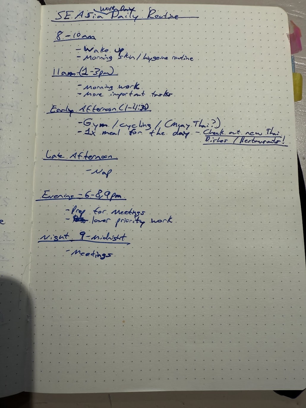 - Context switching overload: time zones, new housing/Wi-Fi, visas, routines. All of these changes are HUGELY risky to your mental health.