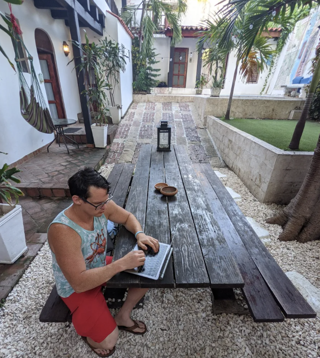 Right across from the beach in Las Terrenas. Excellent internet with backup power—critical in a town where outages happen. Great coffee on-site, AC, call rooms, and natural lighting. Strong nomad community.