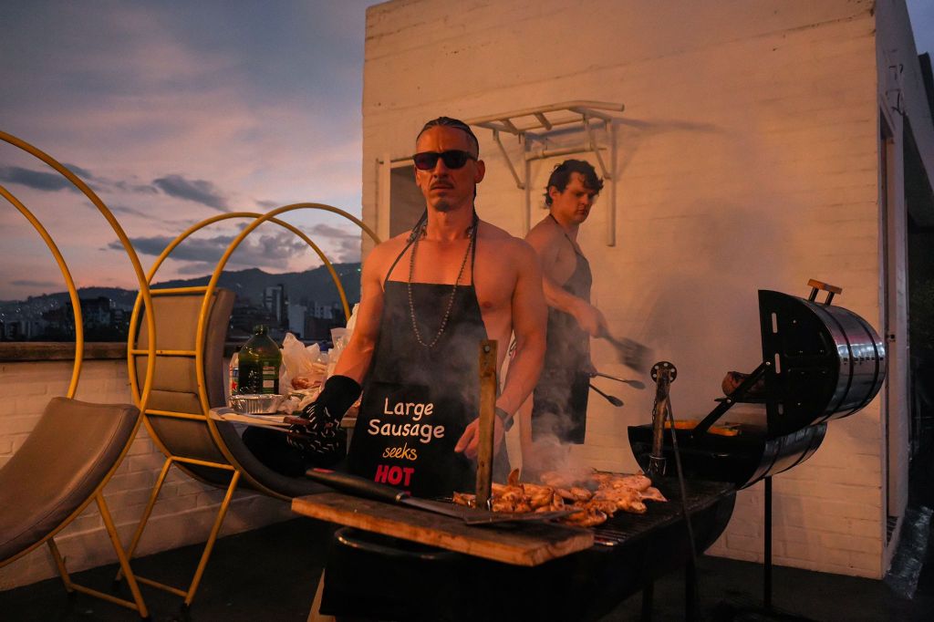 A photo of my buddy Ruben and I at our weekly grills in Medellin (Ruben’s in front, I’m in back)