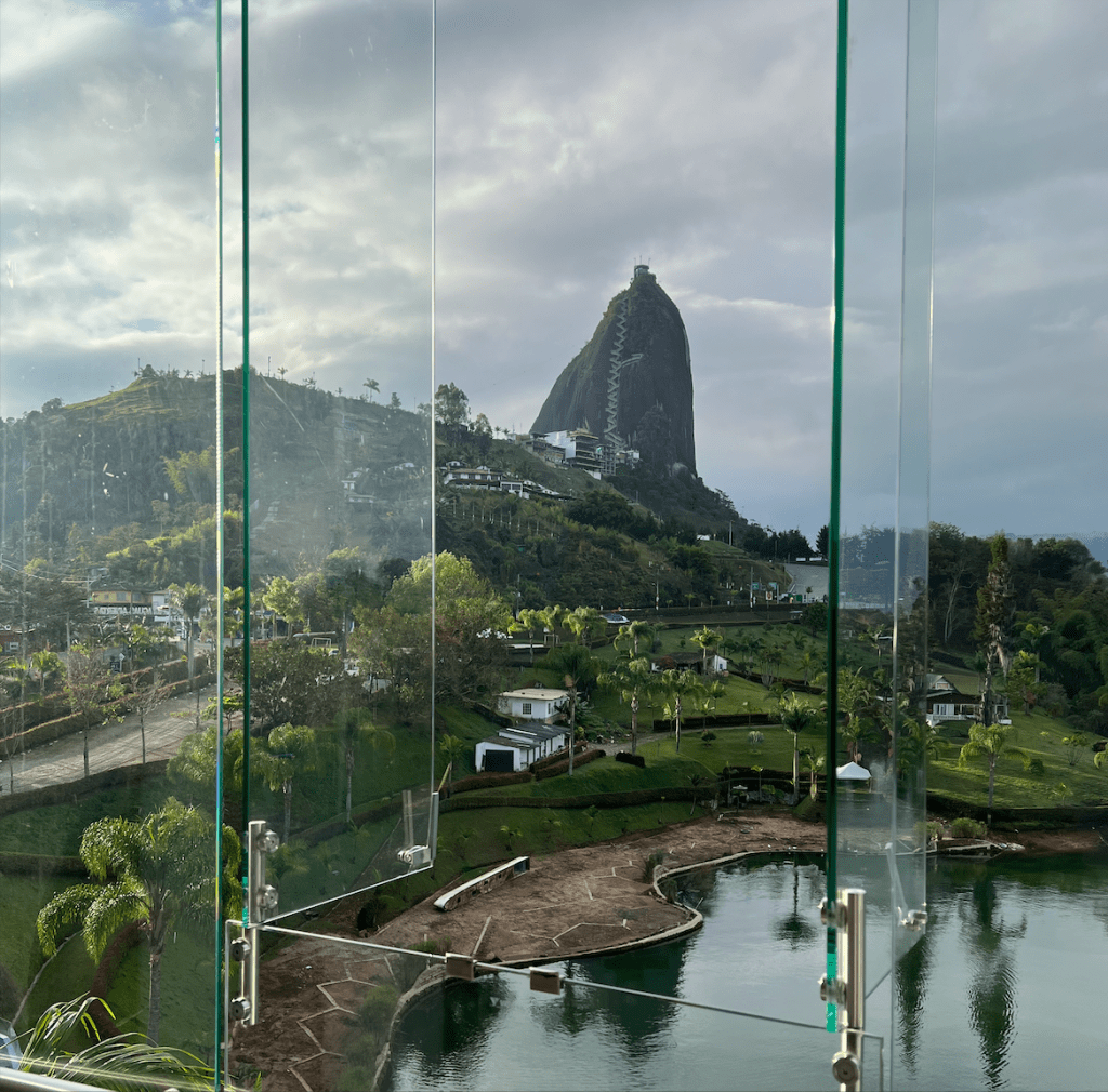 A shot of El Penon De Guatape, a massive rock you can climb not far from Medellin