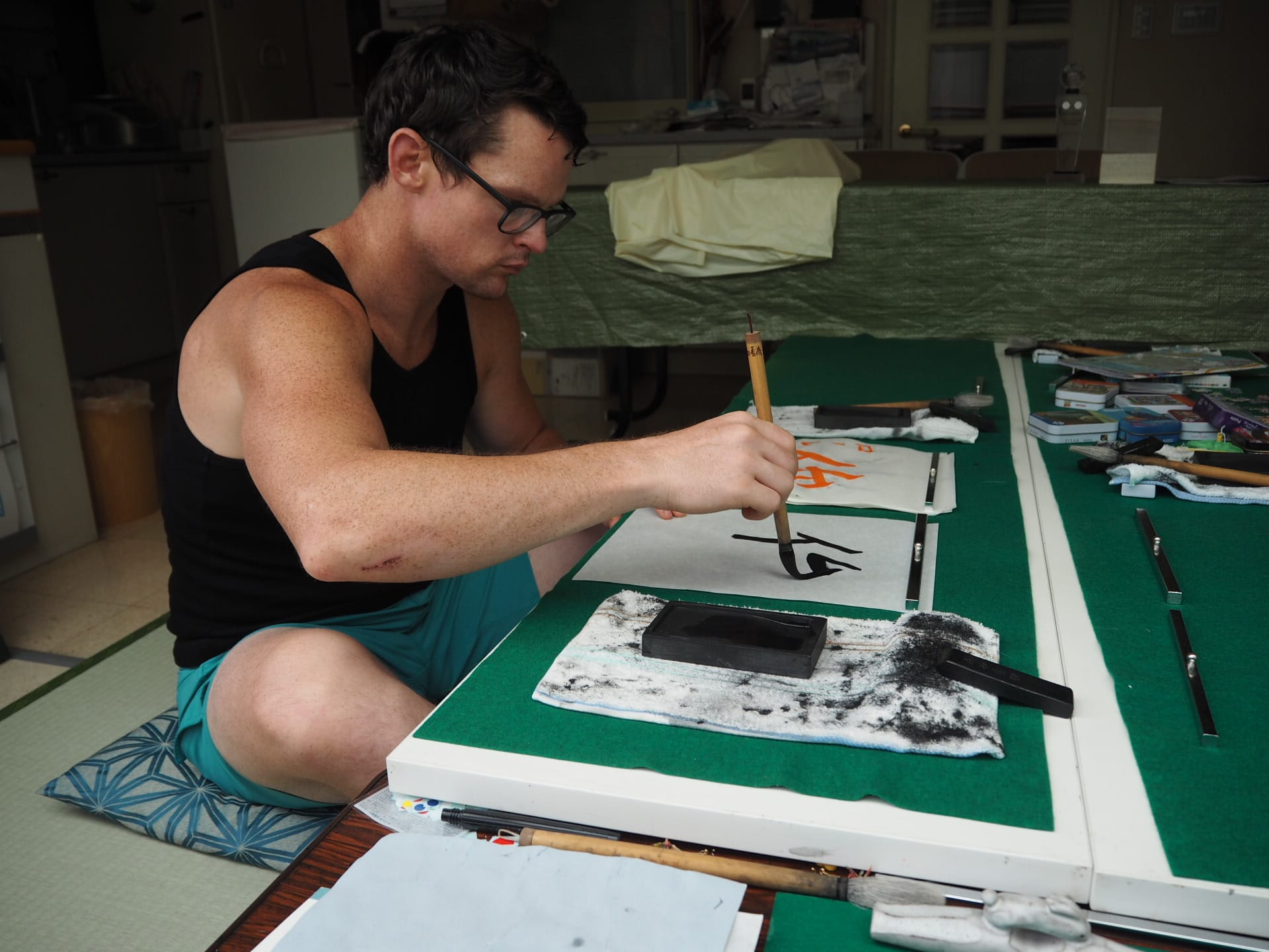 A shot of me doing Calligraphy in Wakalture great teacher in Tokyo
